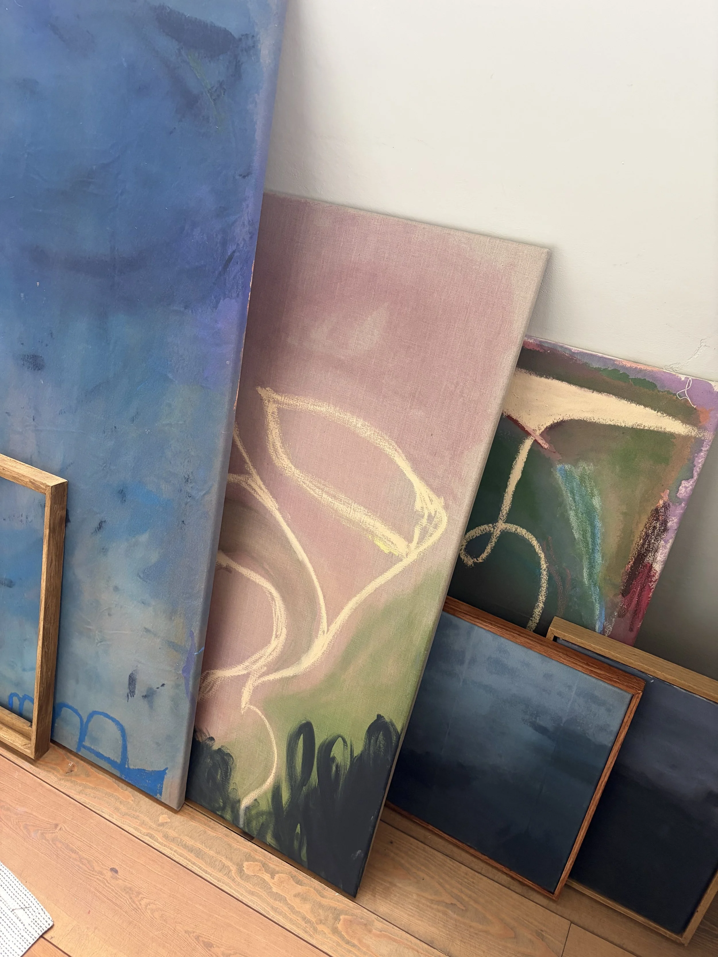 layers of acrylic, oil, and pigment each with their own quiet depth.